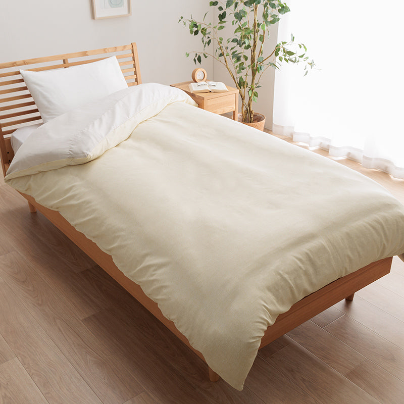 従来のシングルサイズよりも35cmの長く、高身長の方でも足がはみ出ずに快適に眠ることができます。 体にフィットしやすいこだわりの「フィットキルト加工」で、隙間ができにくく、熱を逃がしにくい掛け布団です。中綿には弾力性と保温性の高い東レマッシュロン綿を使用しているため軽くて暖かいです。布団カバーは薄く柔らかい起毛を全体に施したピーチスキン加工の生地を使用しているので肌に触れたときの触り心地がなめらかでとても気持ちいいです。