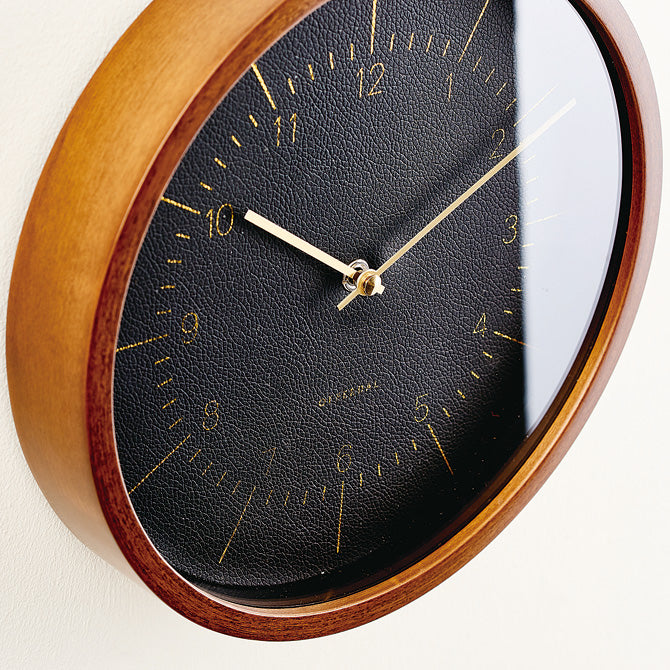 フェイクレザーを文字盤全体にあしらったシックな電波時計。 ゴールドの針や数字が表情豊かな素材感を引き立てます。