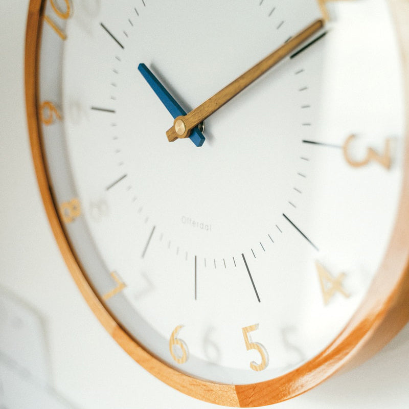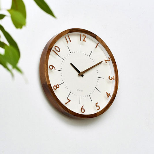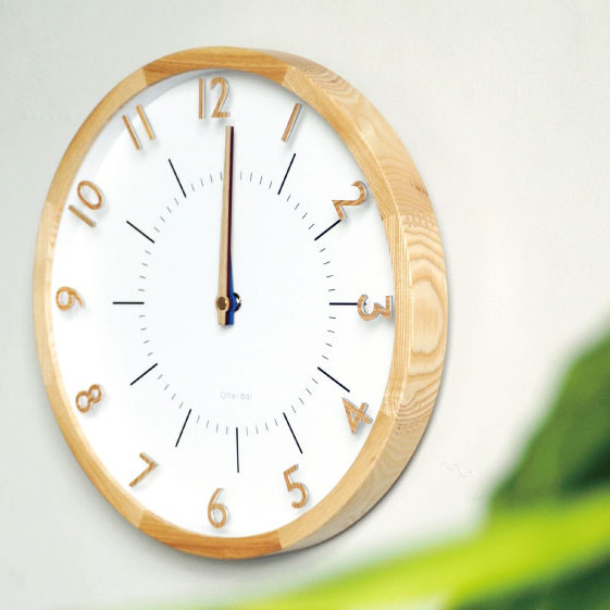 立体的なアクリルの数字と木製の針がポイント。 光沢仕上げをしたウッドフレームを合わせ、ほんのりとクラシカルな印象をプラスしました。