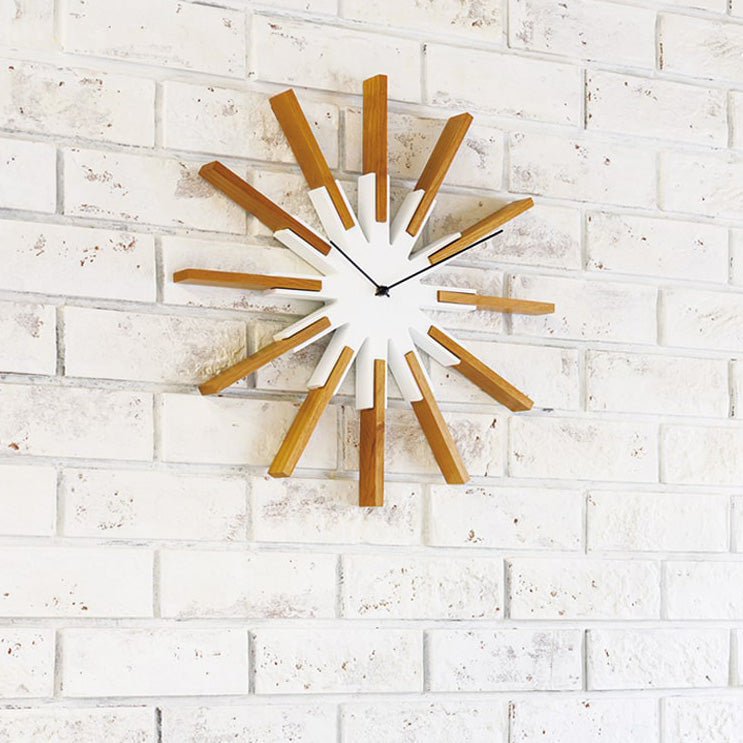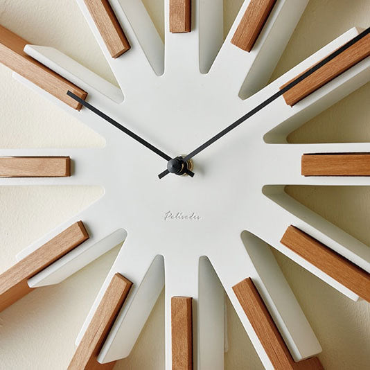 - 一度見たら忘れられない、歯車のようなデザインのウォールクロック。 シンプルなデザインの中に、素材のあたたかみを感じられるナチュラルな仕上がりです。