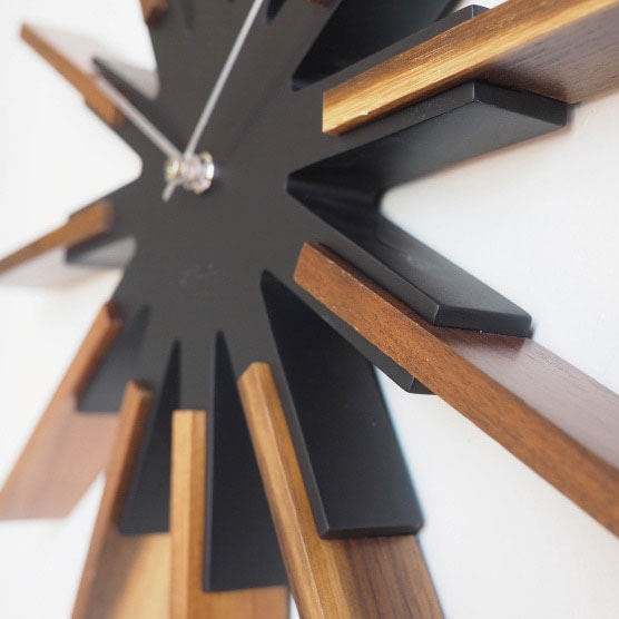 歯車のようなシルエットを作る放射状に伸びたウッドパーツ。 直径44cmと大きめサイズでありながら直線的なデザインは圧迫感を感じさせません。