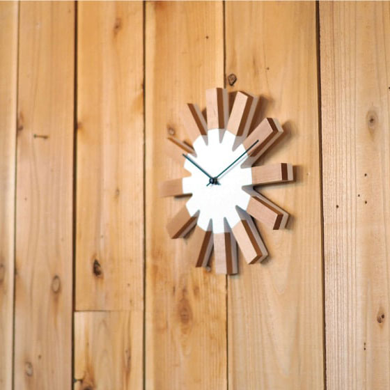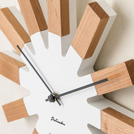 - 一度見たら忘れられない、歯車のようなデザインのウォールクロック。 シンプルな中にも素材のあたたかみを感じられるナチュラルな仕上がりです。