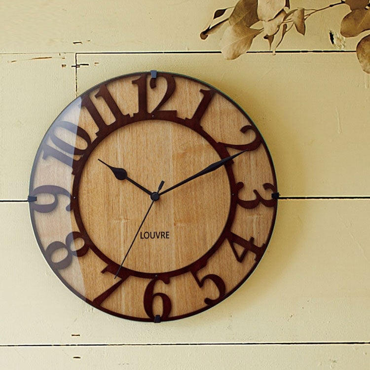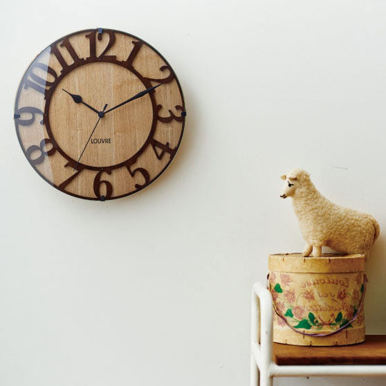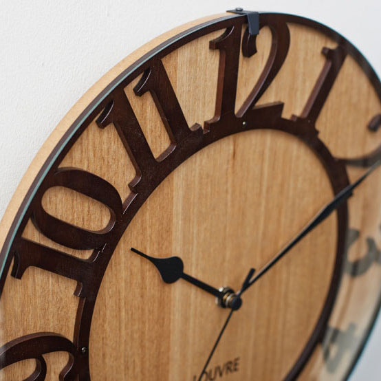 はっきりと見やすい数字部分はレーザーカットで切り出したウッドパーツを重ねて立体感を出しました。 木の濃淡が心地よいコントラストを生み出しています。