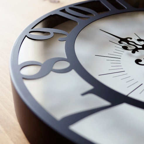 - ヨーロッパの時計台を連想させるクラシカルなウォールクロック。 切り絵のように繊細なデザインの時計は、壁面のシックなアクセントとしてお使いいただけます。