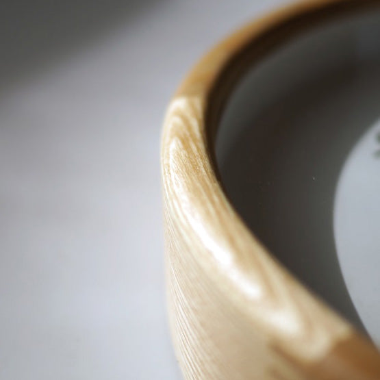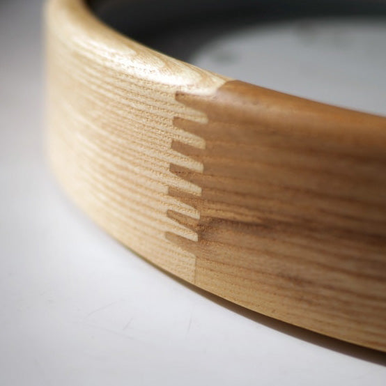 木目や色の濃淡が美しいウッドフレームは組み木のようにていねいに繋ぎ合わせています。