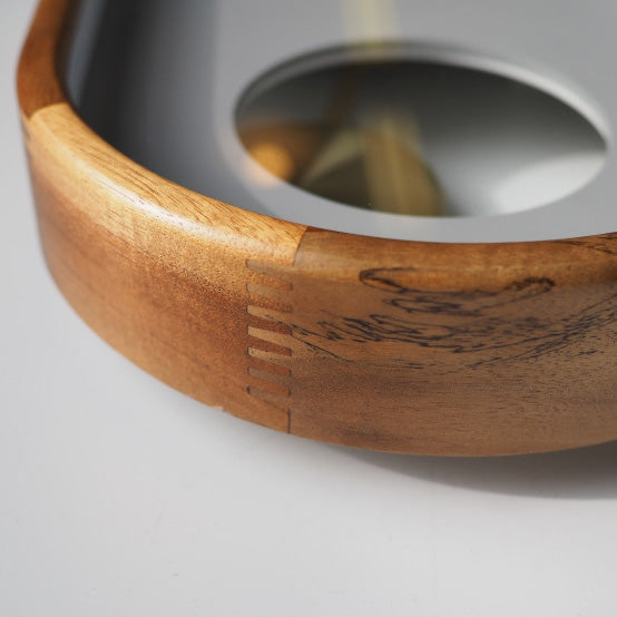 木目や色の濃淡が美しいウッドフレームは組み木のようにていねいに繋ぎ合わせています。