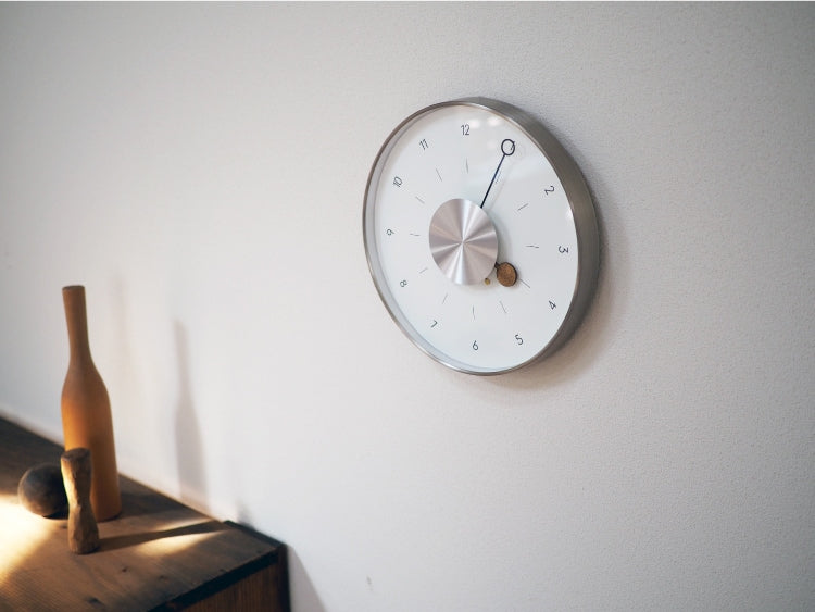 木製の短針がナチュラルなエッセンスを感じさせます。