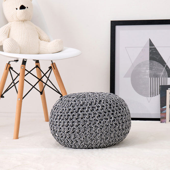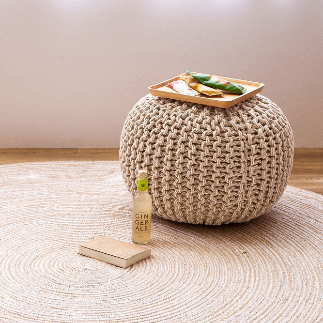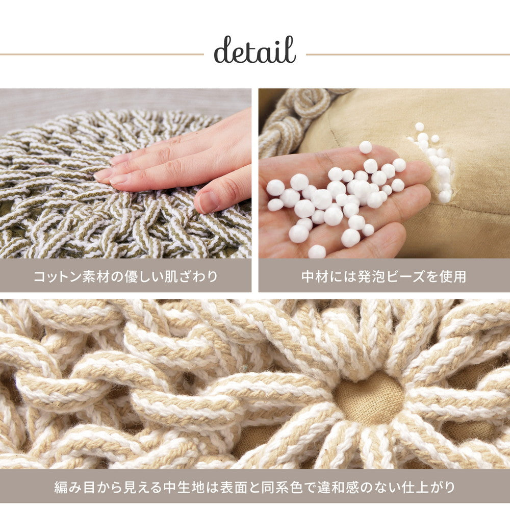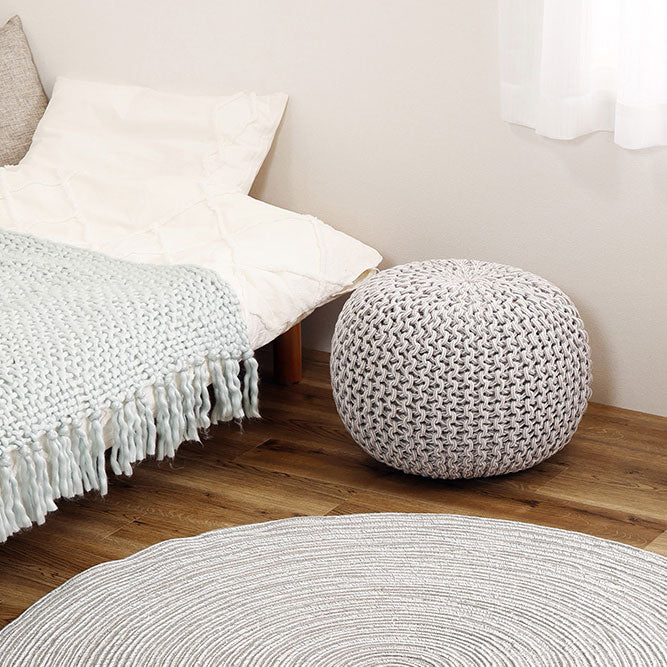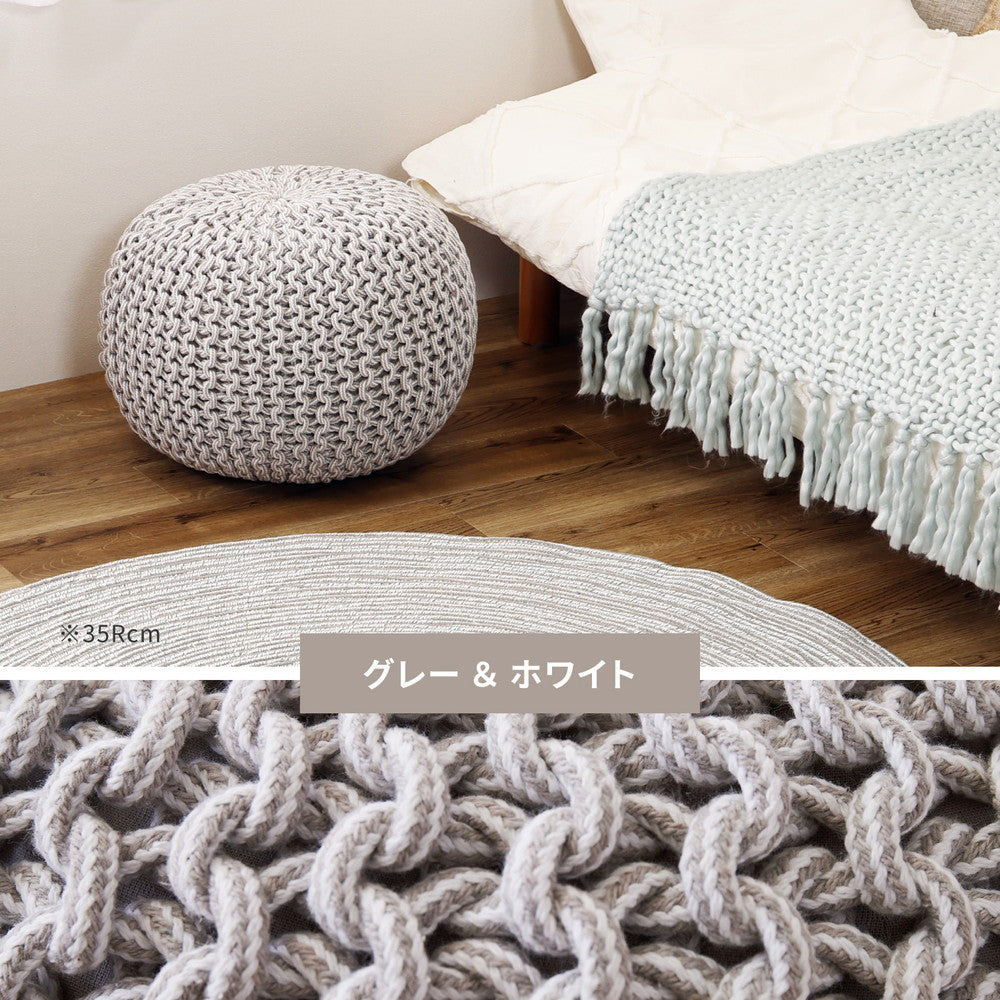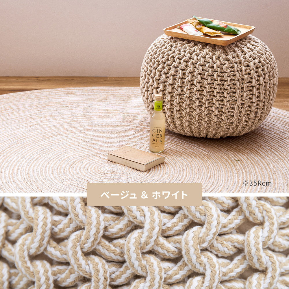 インド綿100%編み込みスツール コットンプフ - 直径35×25cm / グリーン/ホワイト ...は取り寄せ中で入荷次第発送します。