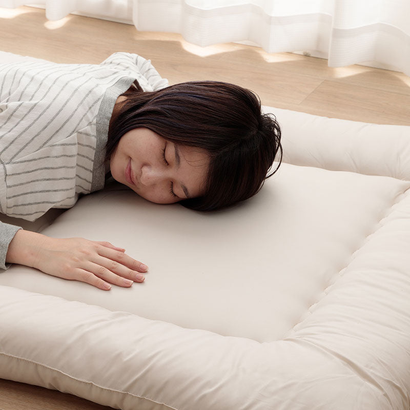 側生地には防ダニ加工を施しているため、ダニや埃の侵入を防ぎます。 保温性・吸湿性を兼ね備えた羊毛を30%使用しています。 羊毛入りのため、冬は暖かく、夏は汗や湿気を吸湿するので、さらっと快適にお眠りいただけます。 国内綿入れ加工を行っています。