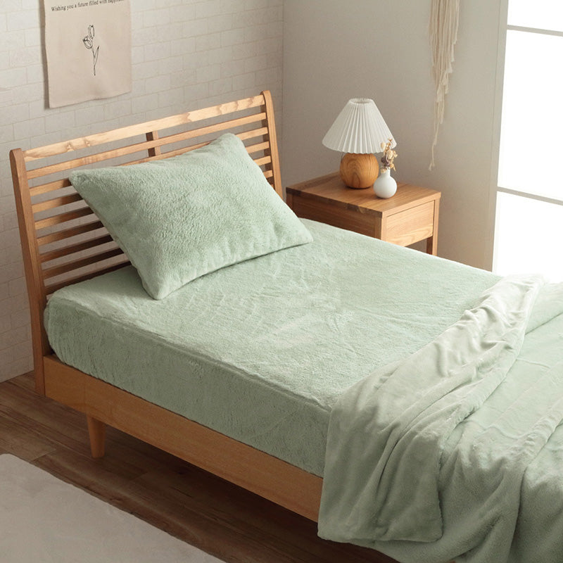 かわいいシンプルデザインのボックスシーツ エコファーを使ったふわふわタッチ - シングル / ダスティピンク ...は取り寄せ中で入荷次第発送します。