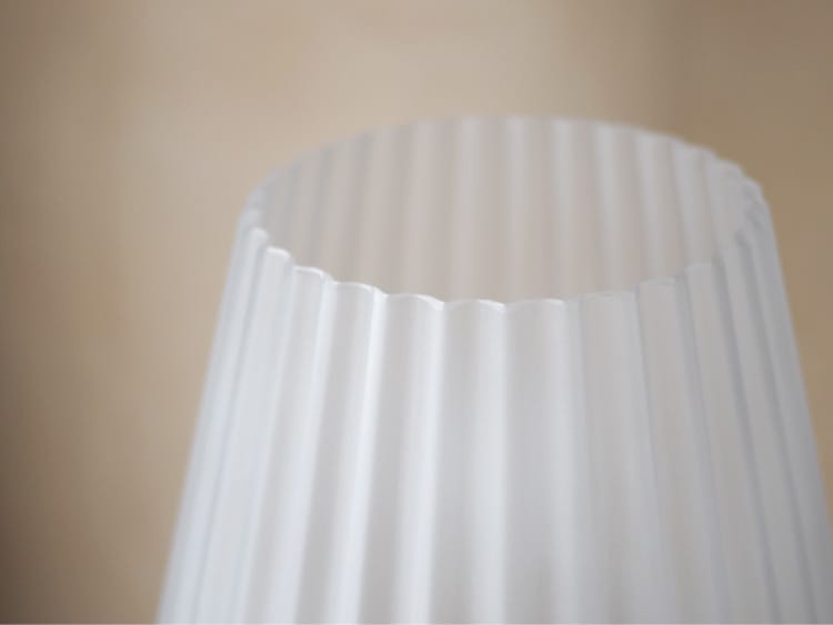 半透明のフロストガラスに柔らかなドレープを施しています。ふんわりと広がる灯りに陰影が生まれ、より繊細なイメージが感じられます。