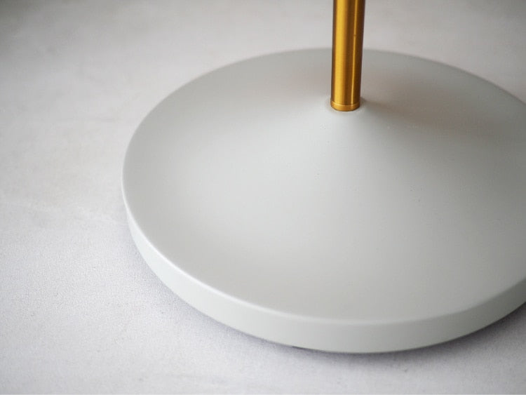 支柱はゴールド、ベースはウォームグレーに。なだらかな勾配を持たせた立体感のあるデザインです。