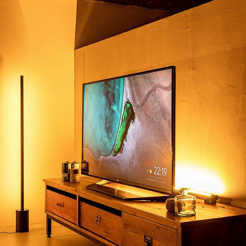 テレビの背面や棚板奥に置けばおしゃれな間接照明に。