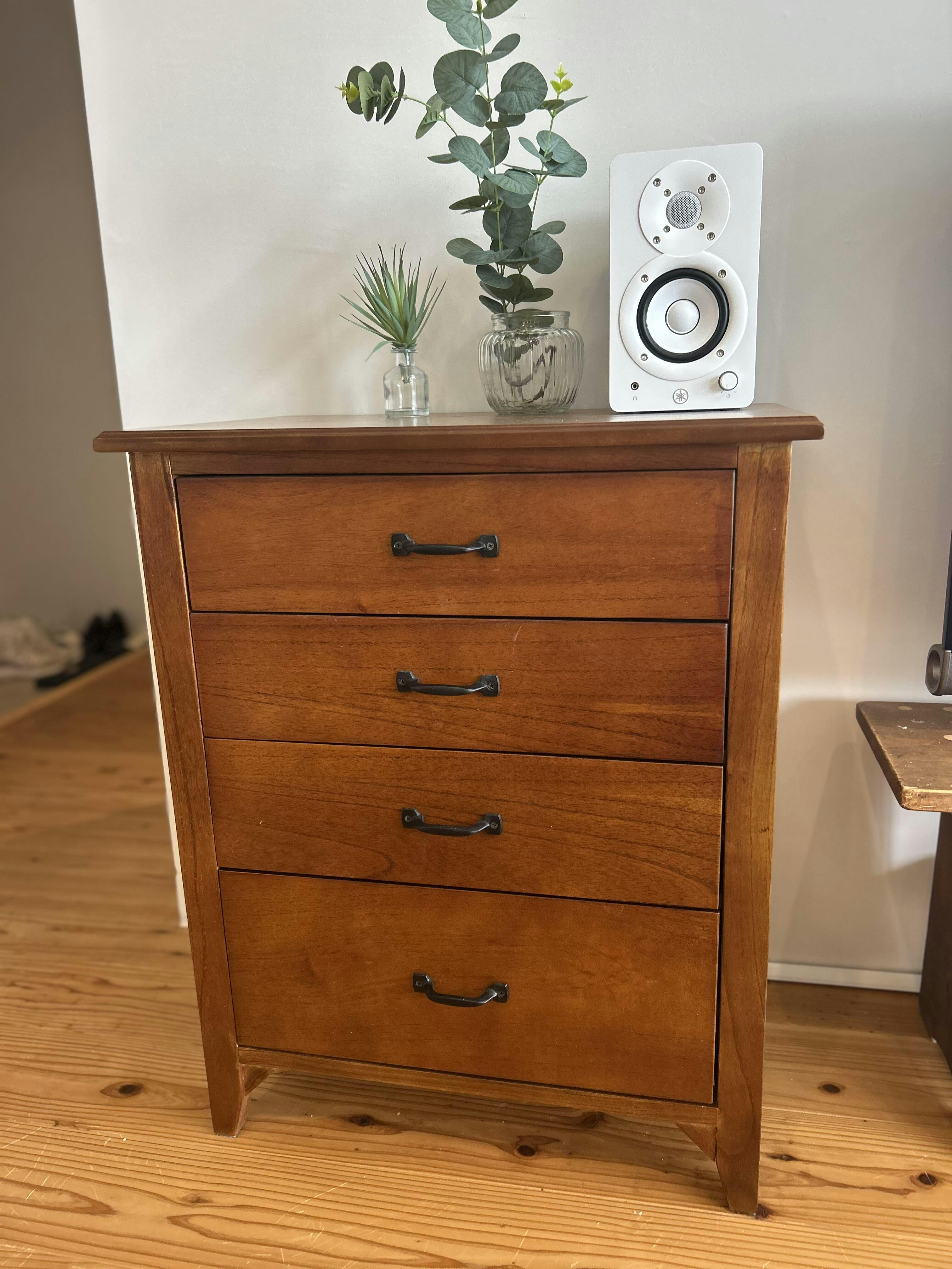 引き出しが4杯ついている収納力のあるミニチェスト。