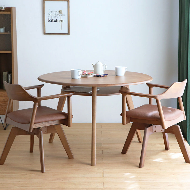 オーク無垢材をふんだんに使った円形ダイニングテーブル 丸テーブル+チェア3脚セット