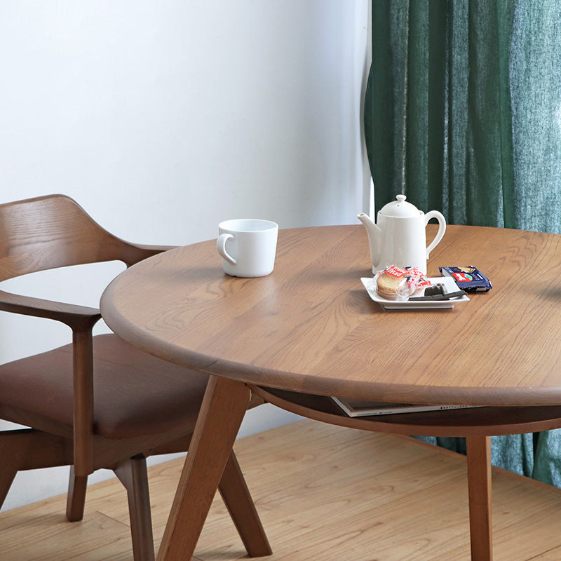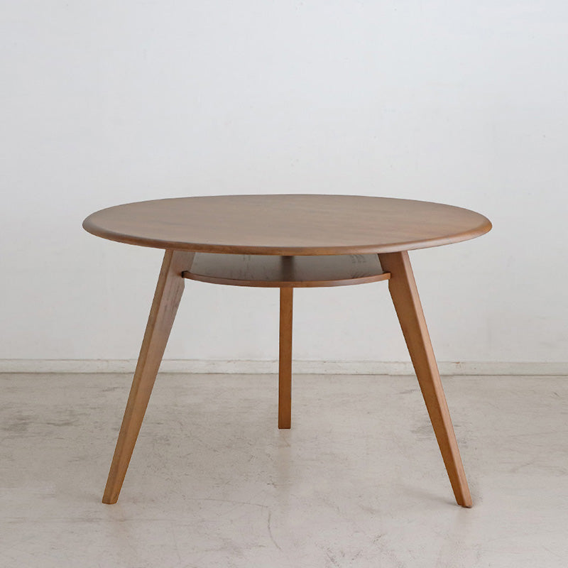 程よい木の質感と綺麗な木目が印象的で、丸みのあるかわいい雰囲気です。 天板の縁にも丸みを持たせ、けがの心配も少ない優しいフォルムに仕上がっています。3本足なのでガタつかず、一人分のスペースも広くゆったりとしています。 会話が生まれやすい円形テーブルで、家族団欒の時間が過ごしてみてはいかがでしょうか。