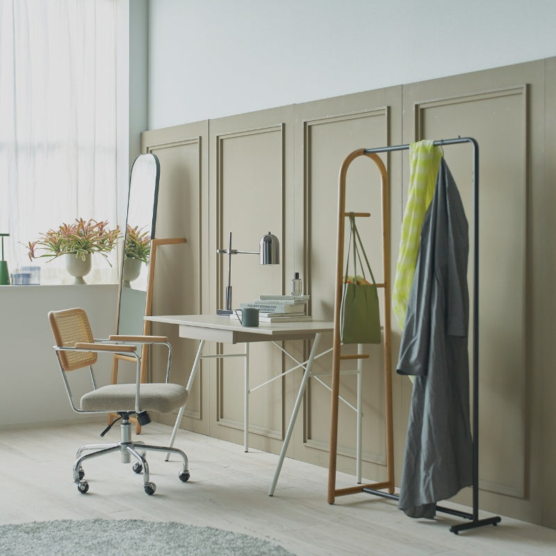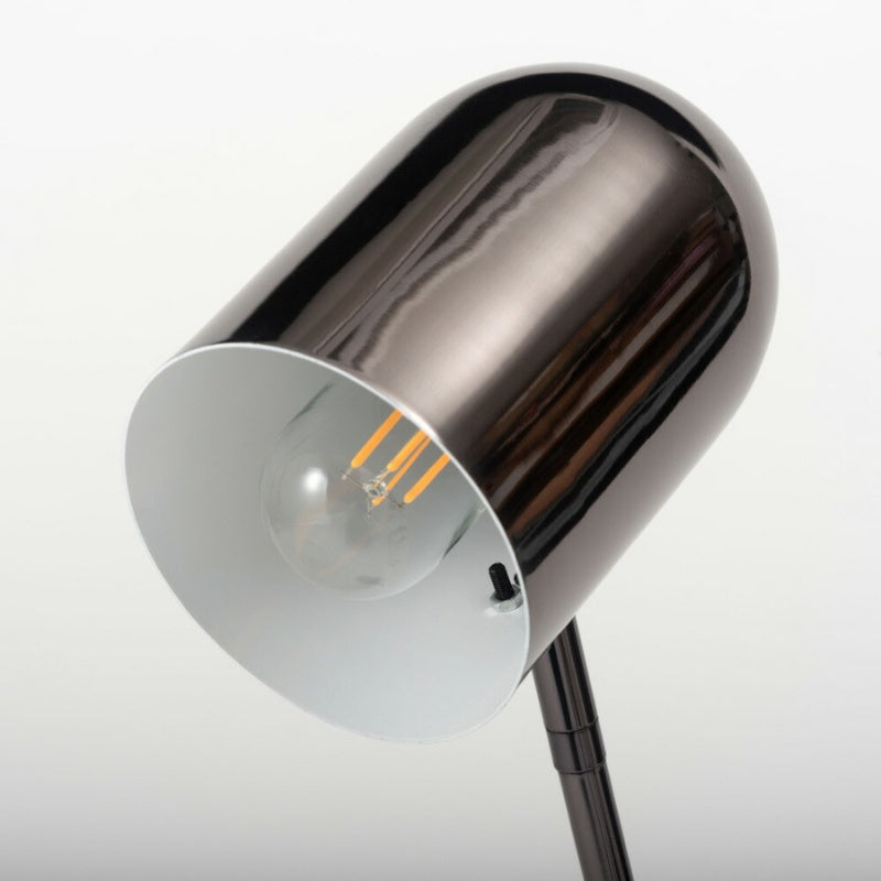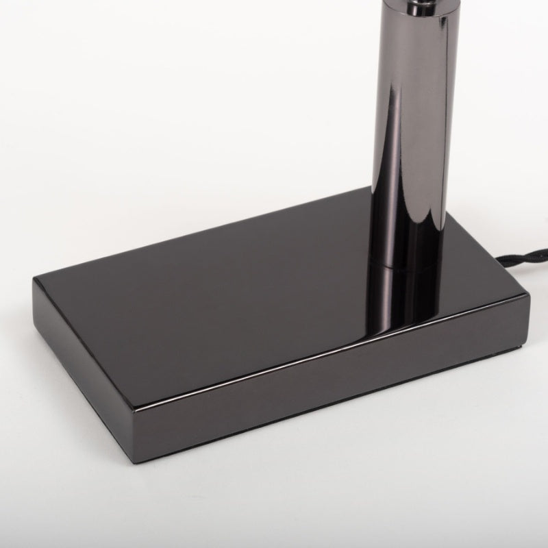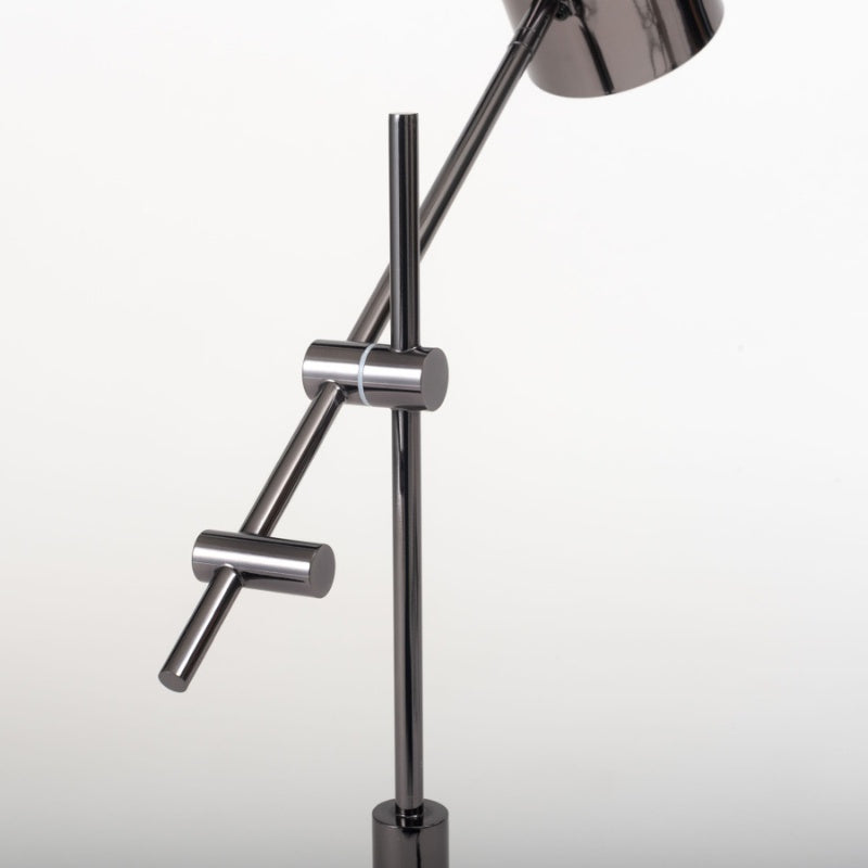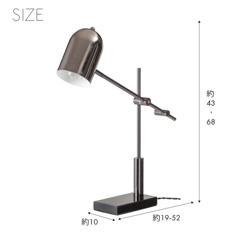 クロームメッキで仕上げたスチール素材を採用したテーブルライト。ツヤ感のあるメタリックカラーが印象的で、空間をモダンかつ引き締まった雰囲気に演出します。幅10cmというスリム設計ながら、高さは43〜68cmまで調整可能。デスクワークやベッドサイド、リビングのアクセント照明として幅広く使えるサイズ感です。