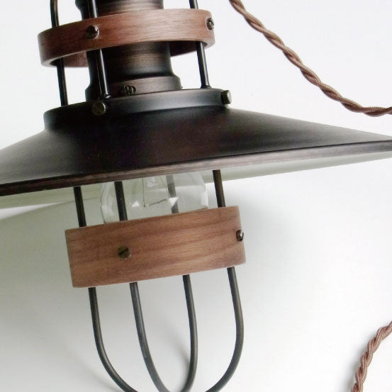 スチールとウッドを組み合わせたノスタルジックな佇まいのペンダントライト