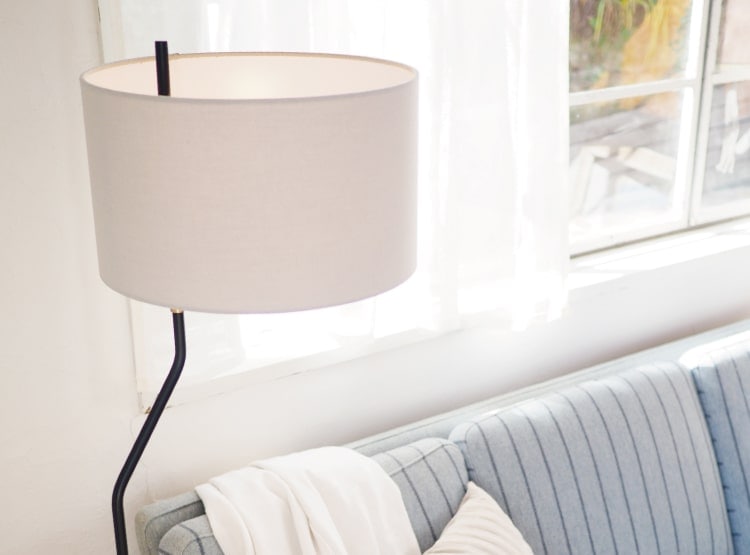 ソケットの近くにあしらわれた真鍮製のパーツ。 ソファーサイドやデスク脇に置いてふと見上げた時に視界に入り、高級感を感じさせます。