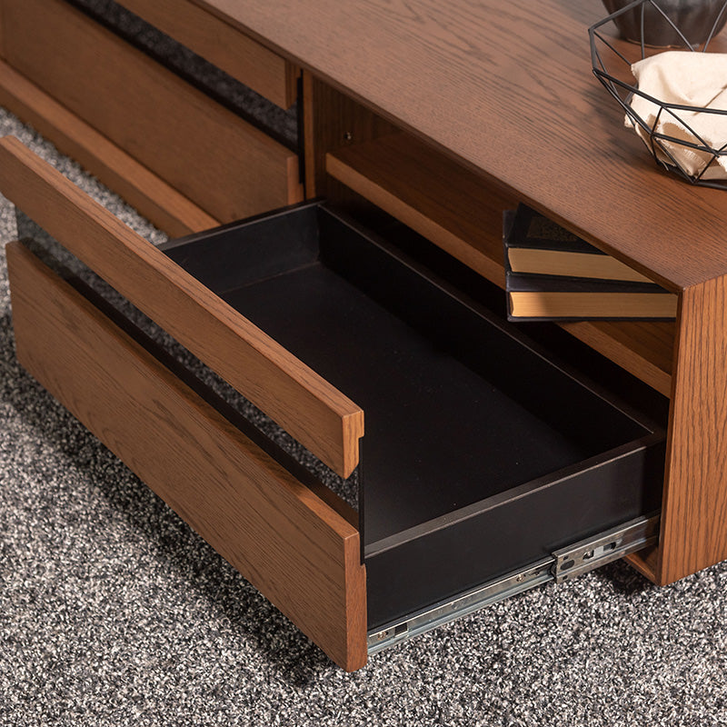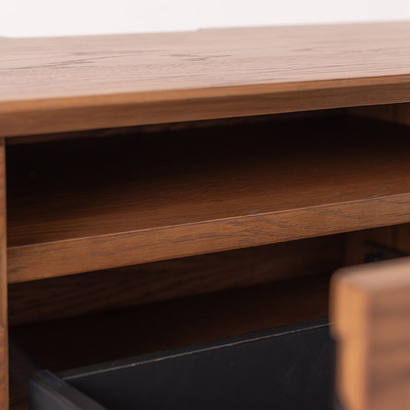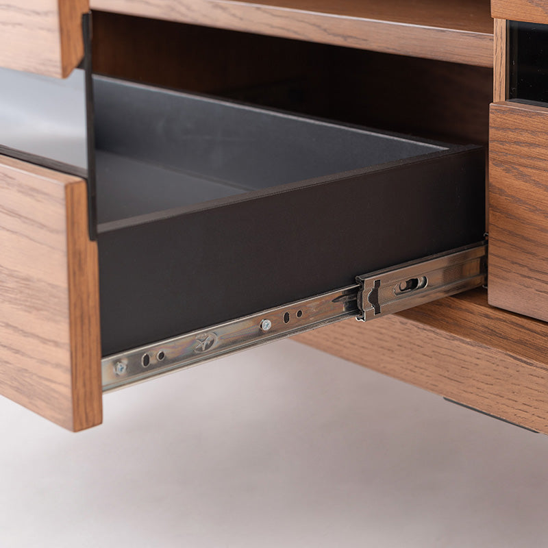 引き出し&棚板の大容量収納で、前板にはガラスが施されている為赤外線を通し、扉を閉めたままでもリモコンの操作ができます。