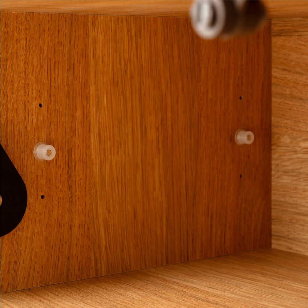 中央スペースの棚板は可動棚になっており、3cmピッチで3段階の高さ調節が可能です。