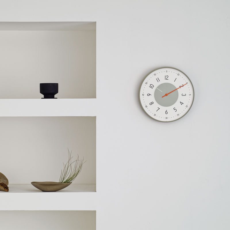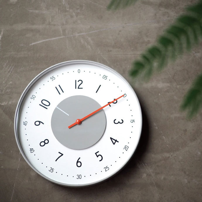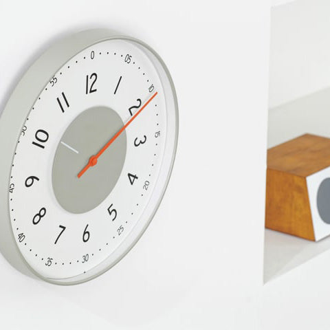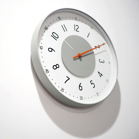 - ドイツのオールドプロダクトをデザインソースとしたスマートなウォールクロック。 特徴的な円盤形の短針とヴィヴィッドなオレンジの長針をライトグレーのフレームが囲む、ユニークなデザインです。