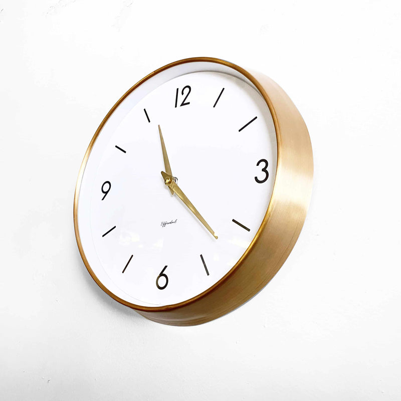 - 少しピンクがかったゴールドのフレームが上品に輝くウォールクロック。 モダンなインテリアと相性の良い、スタイリッシュなデザインです。
