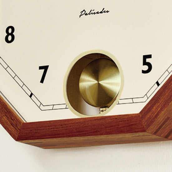 文字盤の6の部分に空いた穴からゴールドの振り子がチラチラ。 ナチュラルなテイストの中でゴールドの輝きが際立ちます。