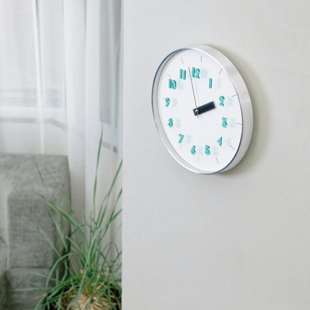 幾何学模様を取り入れたオリジナルフォントの数字が淡い影を落とし、透明感を際立たせています。