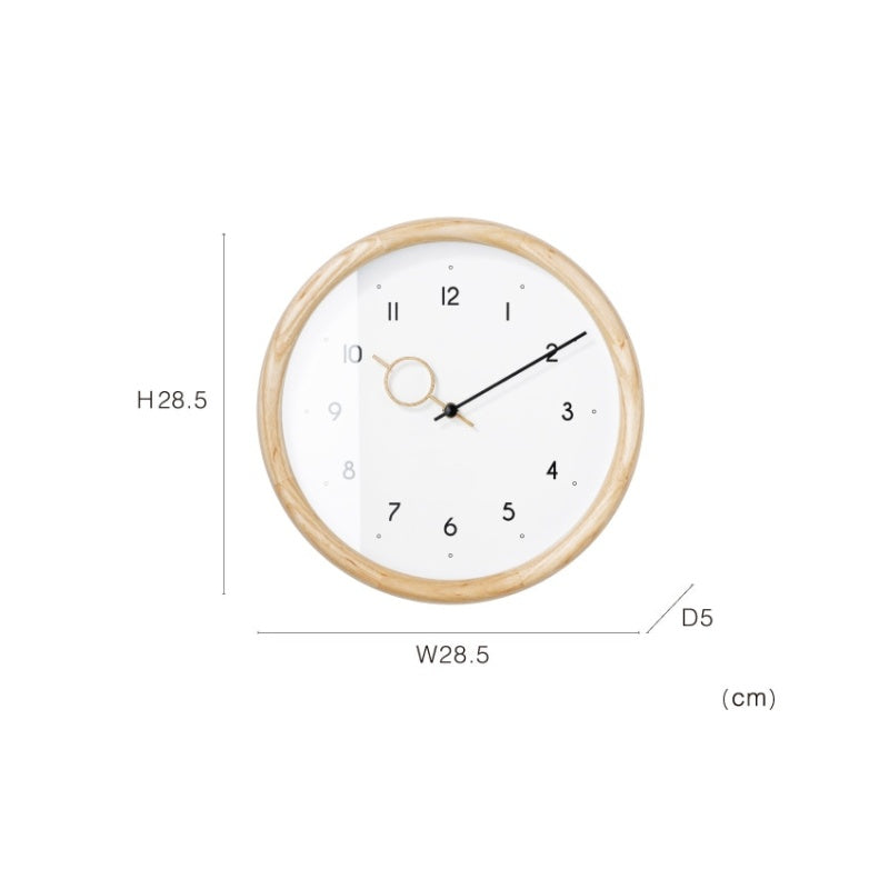 虫メガネのようなデザインの短針にも木を使い、よりナチュラルに。