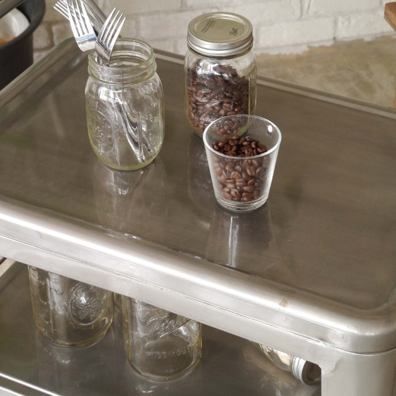 ダイニングのサーブ台として使えるのはもちろん、工具やパーツを並べたガレージのツールワゴンのような雰囲気も持ち合わせたスチール製ワゴン。