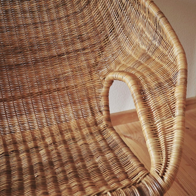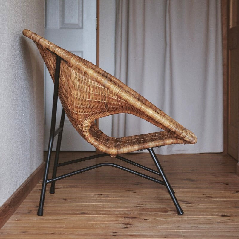 DIRK VAN SLIEDREGT のイージーチェアをアムステルダムのアンティークショップで見つけました。変わった形の素晴らしい椅子だなと思い問い合わせたところ彼の作品だと聞き、他の作品と雰囲気が違うことに驚きました。独特のアームの形と全体の存在感で、空間の雰囲気を大きく変えてしまう力を持った椅子です。