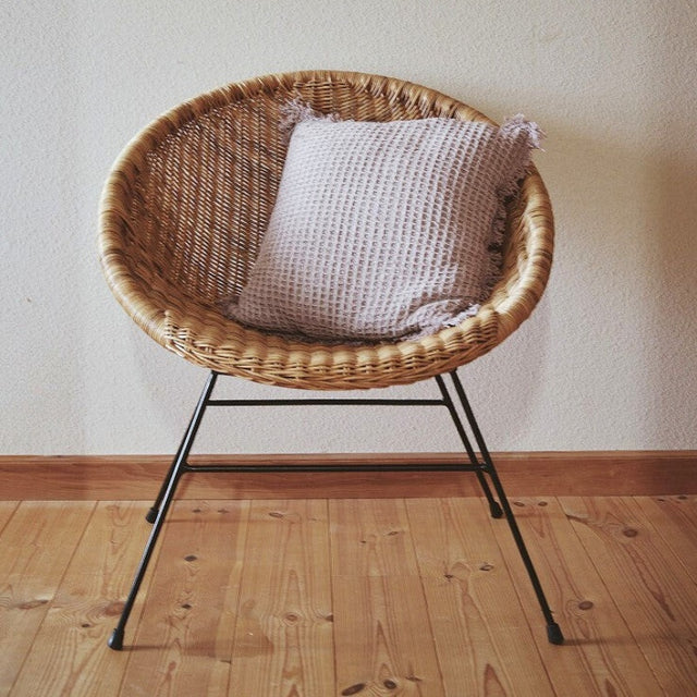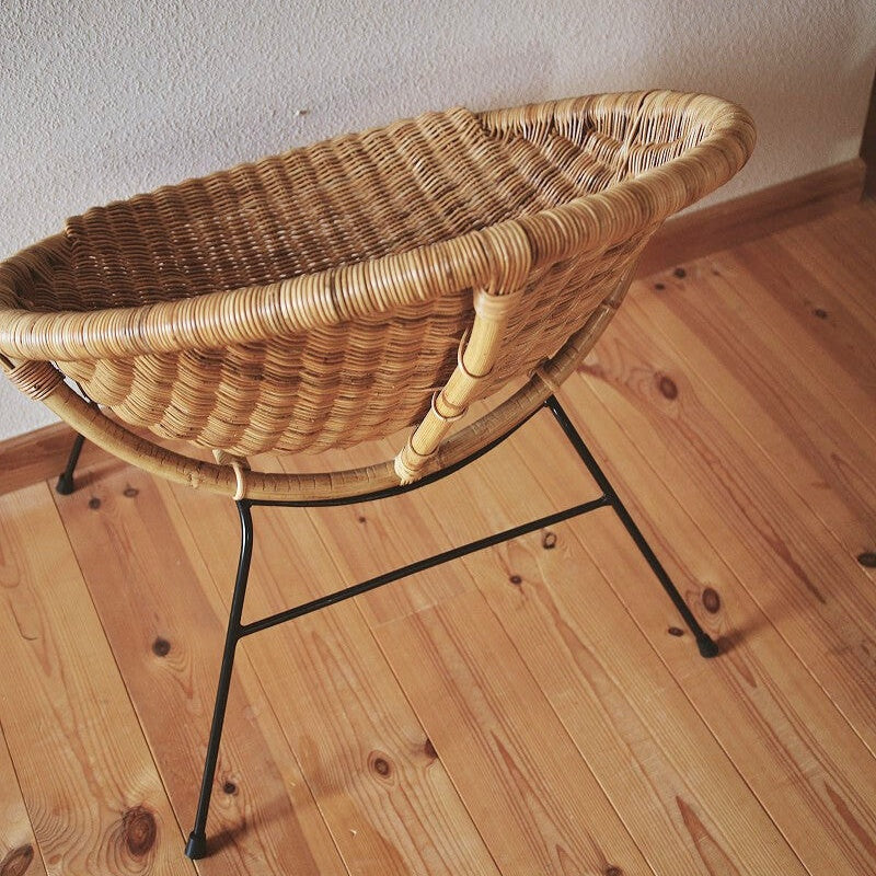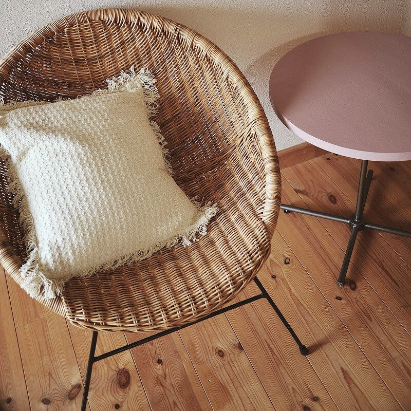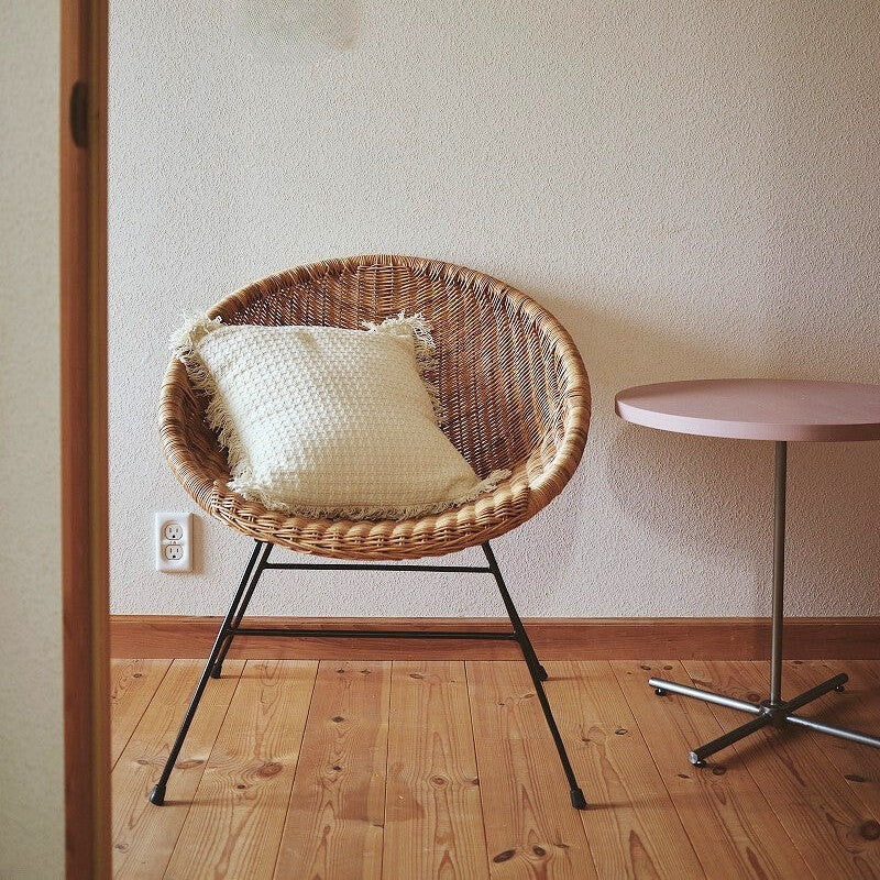 以前から気になっていたイージーチェアですが、実見して素晴らしさを再確認しました。製作当時、ラタンの材料が手に入らなかったのか、フレームはブナ材を使ってウィービングの材料はラタンではない物が使われてました。この椅子をラタンで作ってみたらどんな表情になるのか、という好奇心で作ってみたら素敵に蘇りました。
