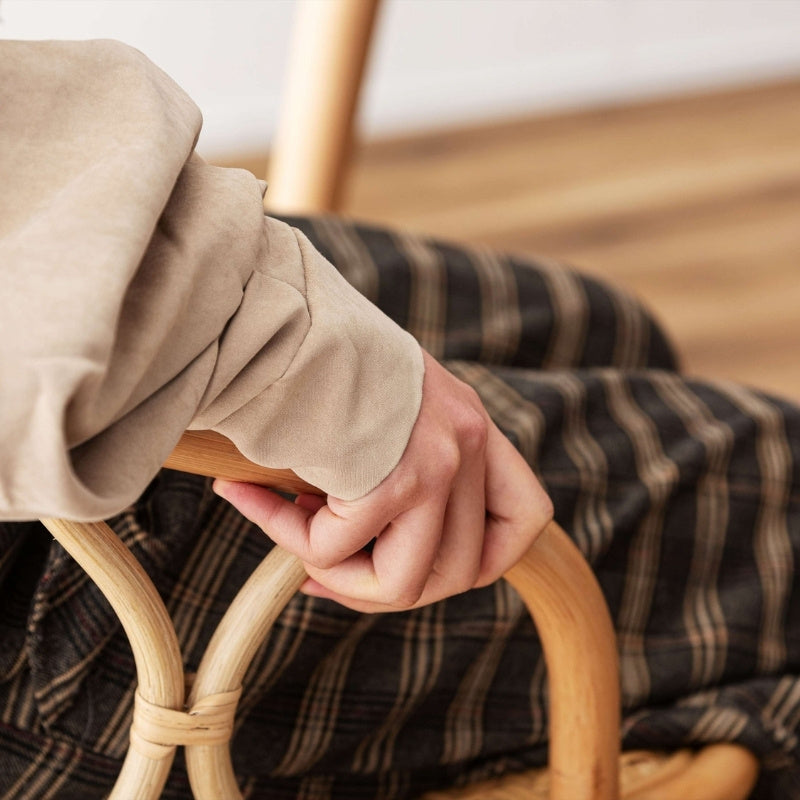 角のない丸みを帯びたフォルムが、座った時に身体を優しく受け止めます。背中に沿うようなフィット感があるため、長時間のティータイムや読書の時間もリラックスして過ごせます。軽やかな「抜け感」のあるデザインが、お部屋に圧迫感を与えません。