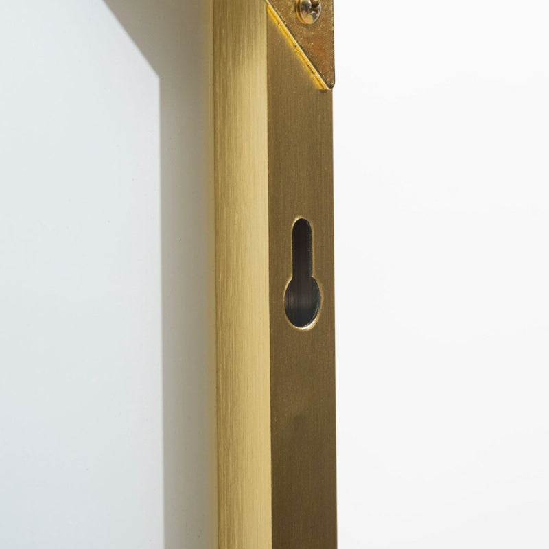 直線的でシャープなメタルフレームと、余分な装飾を一切省いたミニマルなフォルムが特徴。鏡としての実用性はもちろん、空間にスタイリッシュな抜け感と奥行きをプラスするインテリアとしても活躍します。ブラックとゴールドの2色展開で、モノトーン・インダストリアル・ナチュラルなど幅広いインテリアスタイルに対応します。