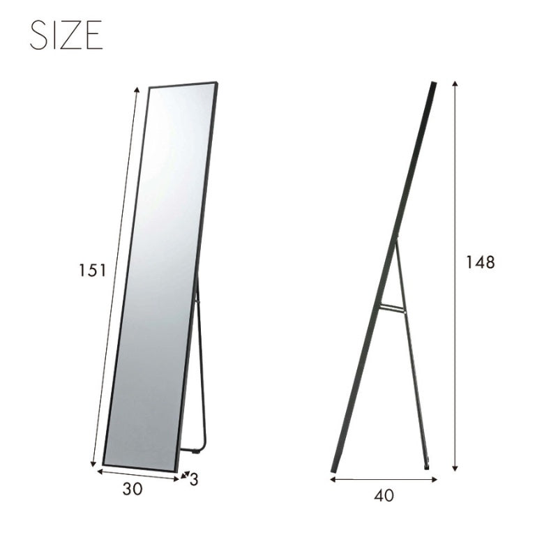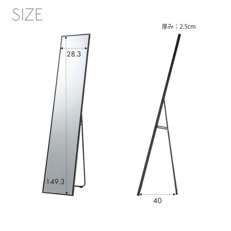 スタンドミラー 幅30cm シャープなメタルフレームのミニマルデザイン