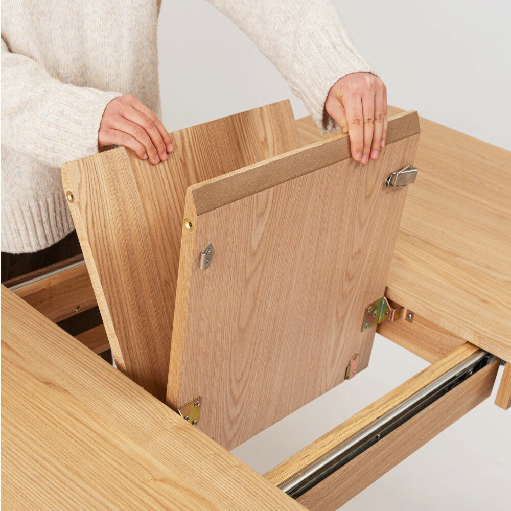 短いときは中の板を収納できるので、使いたい時にサッとテーブルを拡張できます。