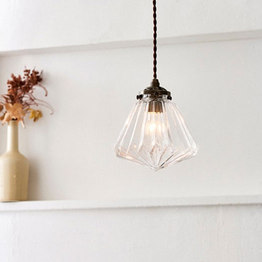 凹凸が連なるガラスシェードが独特の趣を生み出します。フレンチアンティークを思わせる可憐なデザインです。