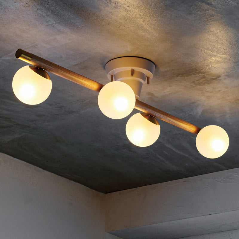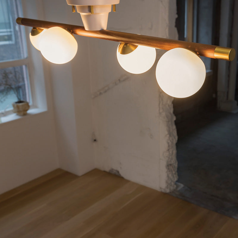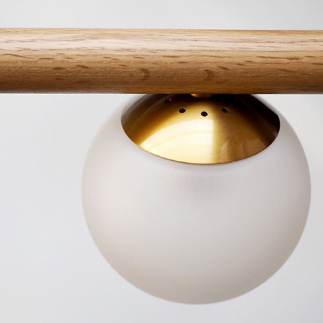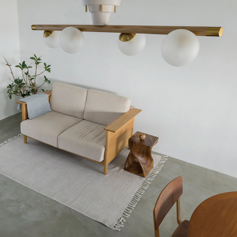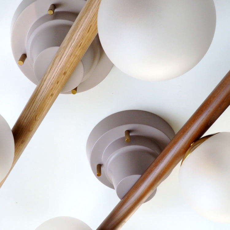 ウッドアームに沿って球体が均等に並び、ミニマルでありながらナチュラルなムードを漂わせます。