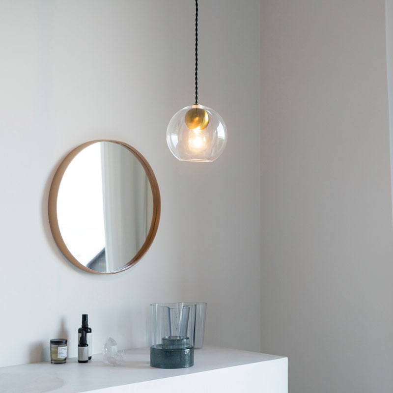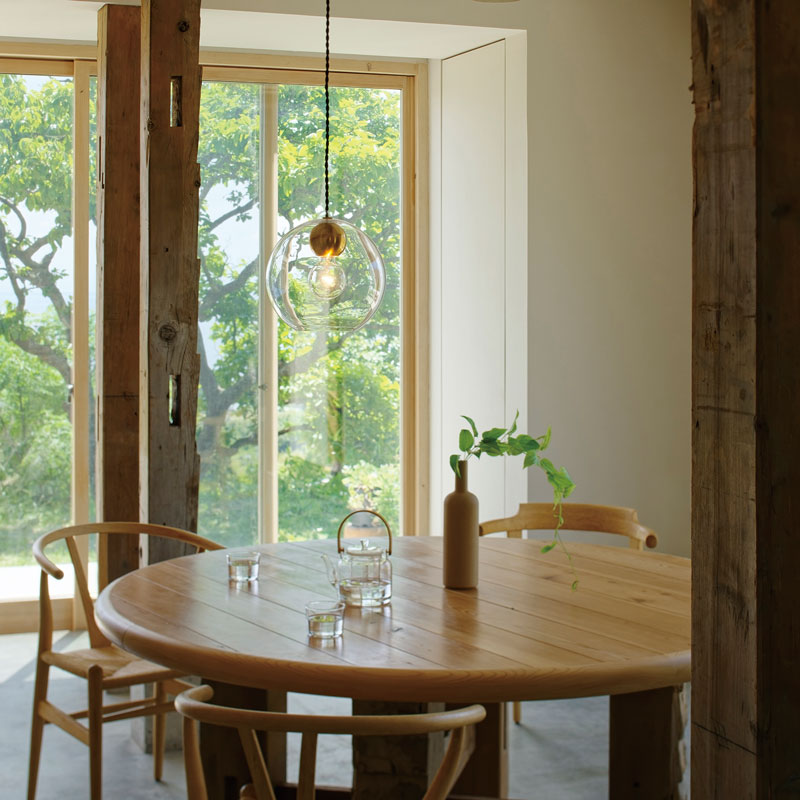 - ガラス、ソケット、電球と3つの球体からなるデザインは角がなく柔らかな印象。
