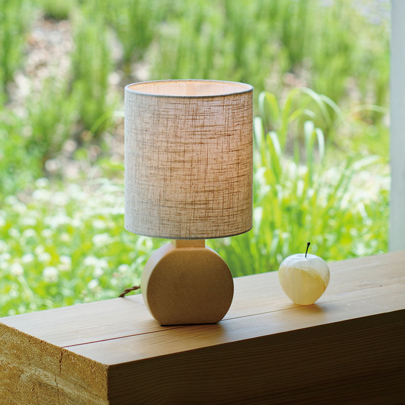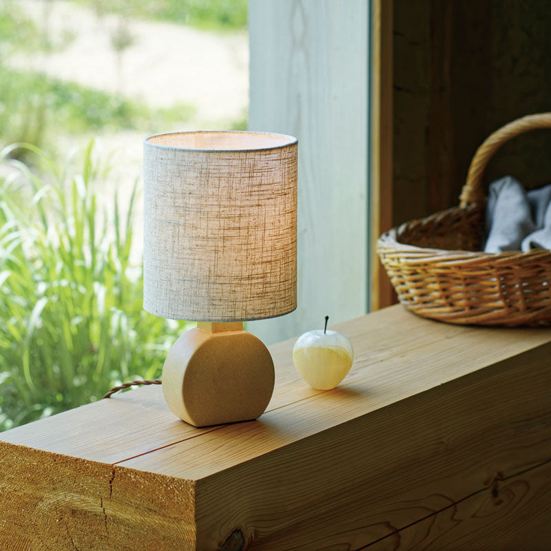 ベージュの淡い色合いと麻混合ファブリックシェードが柔らかなテーブルライト Potti - ポッティ