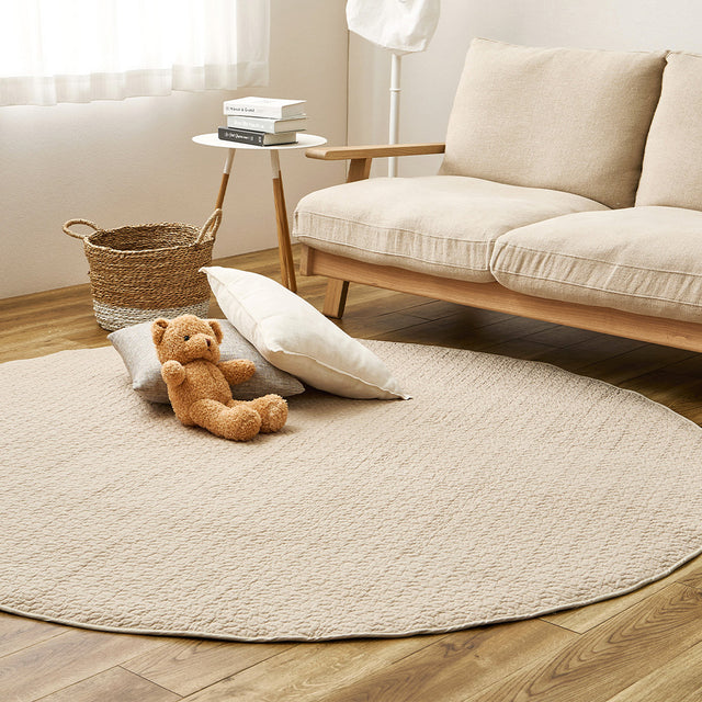 イブル 綿100%の洗えるラグ マルチカバーやベッドカバーとしても使える 円形 - 円形190cm / ベージュ ...は取り寄せ中で入荷次第発送します。
