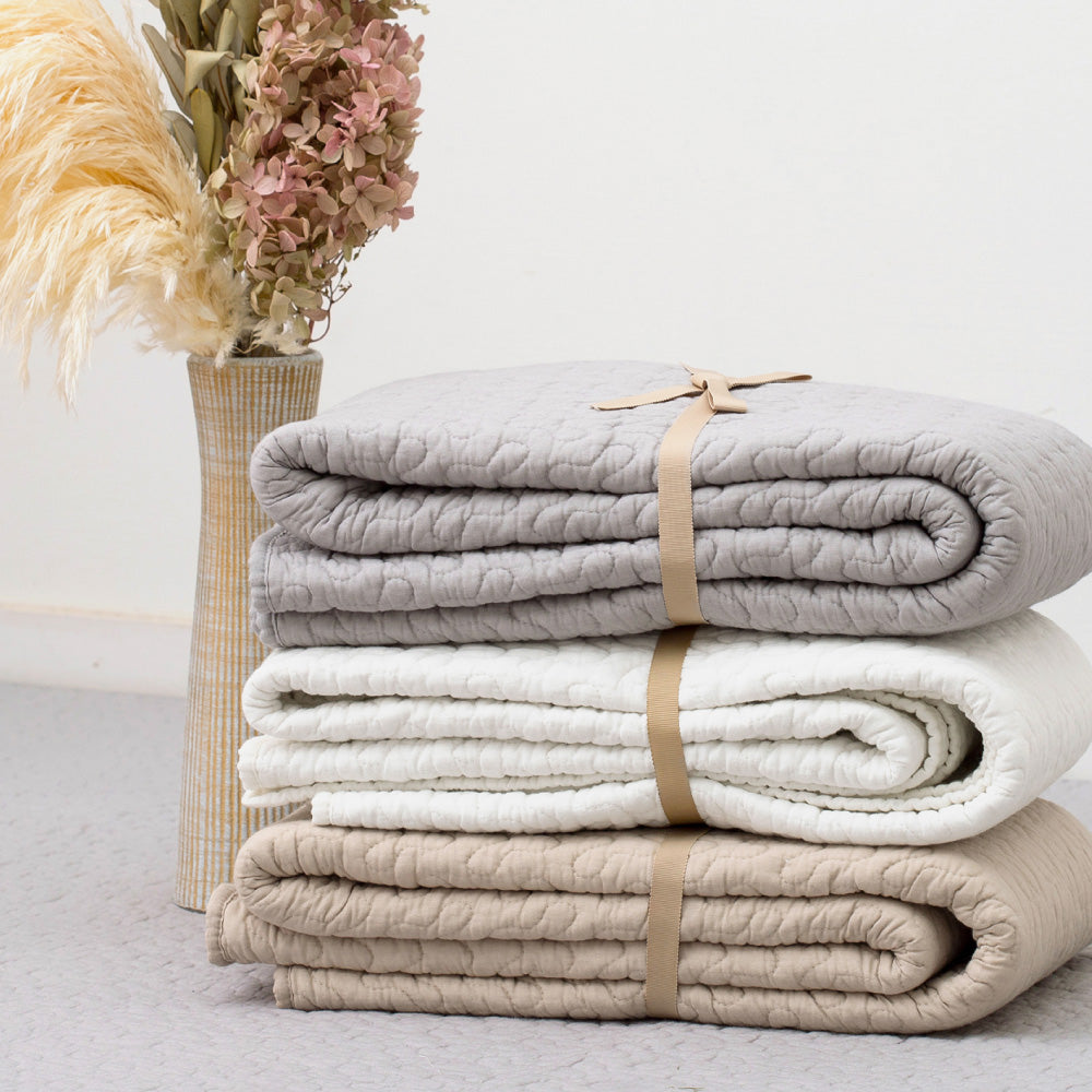 コットン100%で赤ちゃんの肌にもやさしく、中綿が入ったキルティング生地でふわっとやわらかな肌ざわり。