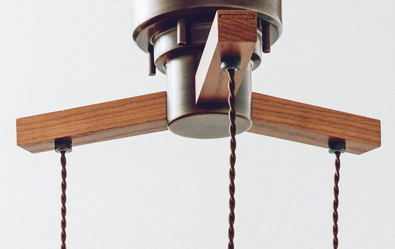 アンティークゴールドのソケットとブラウンのよりコードを採用し、レトロなテイストに仕上げました。吊るす長さ調節ができ、余ったコードはシーリングカップの中にすっきりと収納できます。