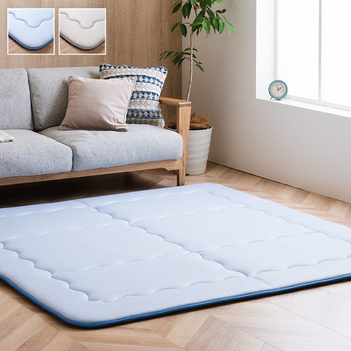 ひんやり冷感素材の夏向けラグ 底つき感のない厚さ約40mm