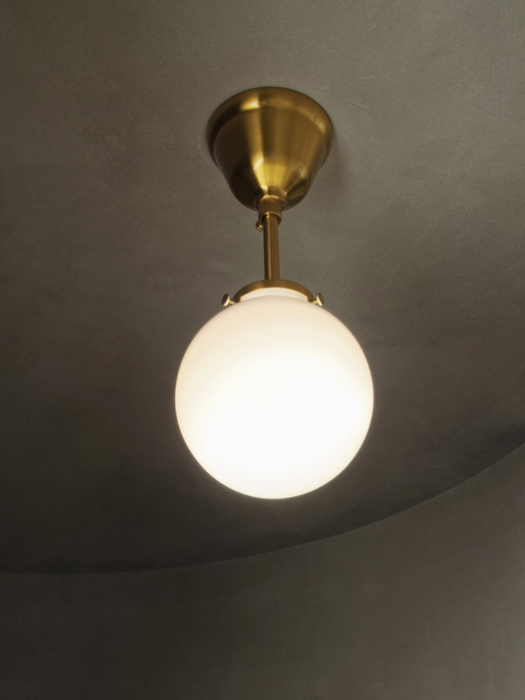 ゴールドのボディに丸いガラスシェードを合わせた人気シリーズのスポットライトバージョン。限られたスペースにフィットする、すっきりとしたデザインにこだわりました。
