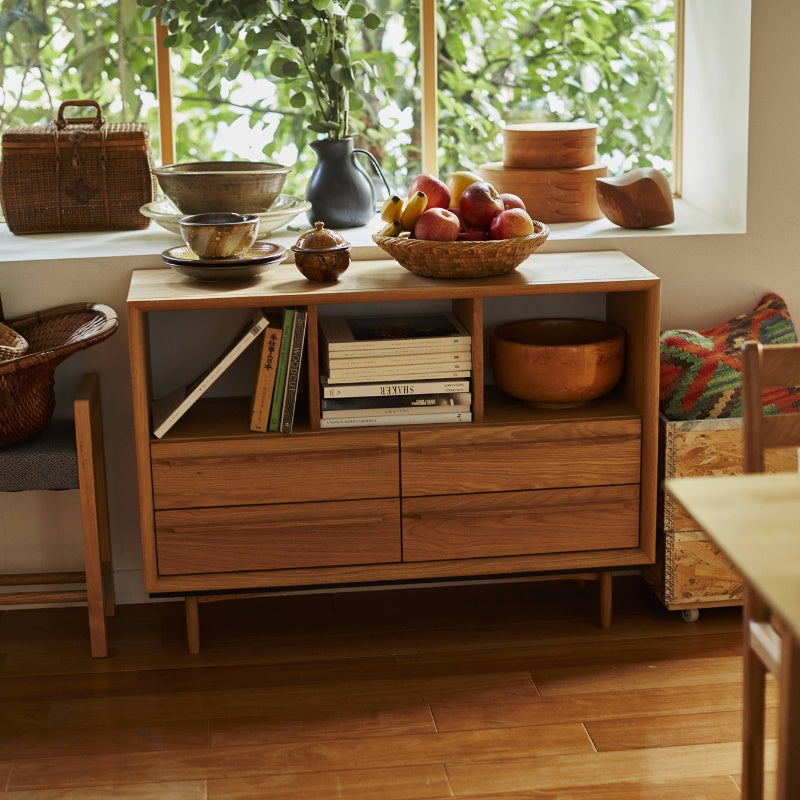 オークの質感が引き立つ 多機能オープンチェスト