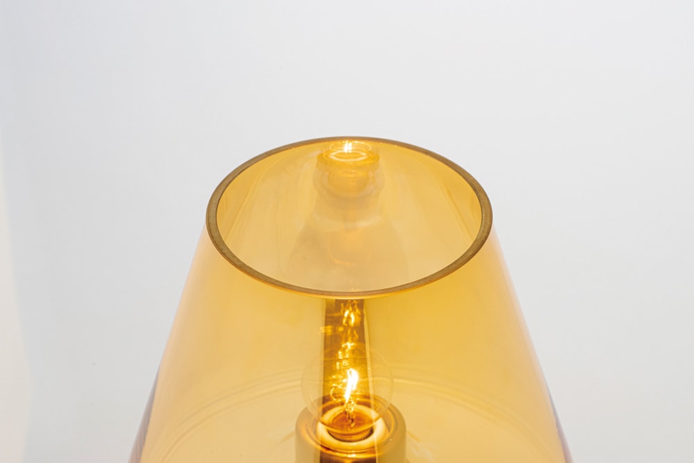 大理石のベースとアンバー色のガラスシェードをつなぐゴールドカラー。 支柱やベースの足元にゴールドをあしらい、ゴージャス感を添えました。