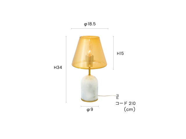 ひとつひとつ模様が異なる天然大理石のベースにアンバーカラーのガラスシェードを合わせたテーブルライト。 重量感のあるオブジェのような佇まいは、インテリアの良質なアクセントとなります。