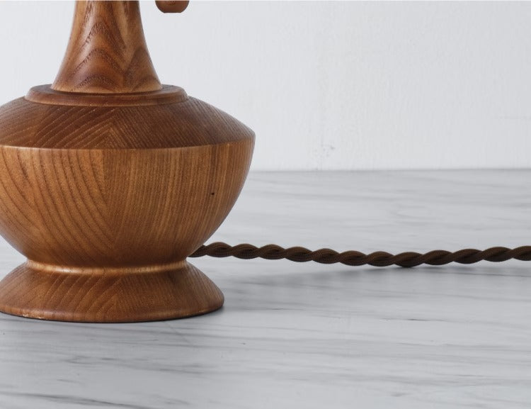 表情のある混紡生地を用いたファブリックシェードが、電球の光を柔らかく広げ、陰影と共に落ち着いたムードを作りだします。